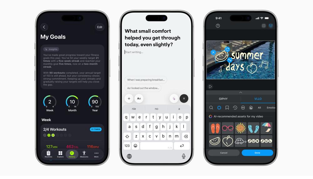Mit Apples Foundation Models Framework können Entwickler:innen wie SmartGym, Stoic und VLLO neue intelligente Features umsetzen, indem sie direkt auf dem Gerät auf das große Sprachmodell zugreifen, auf dem Apple Intelligence basiert.