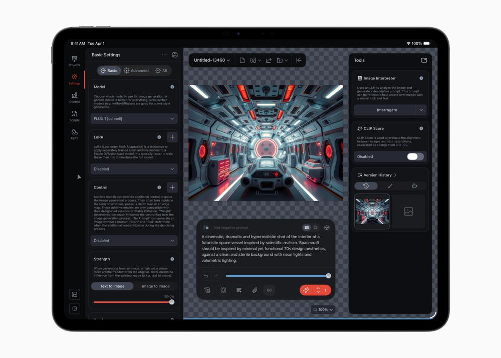 Das neue iPad Pro mit M5 liefert eine bis zu 3,5-mal schnellere KI Performance als das iPad Pro mit M4 und eine bis zu 5,6-mal schnellere KI Performance als das iPad Pro mit M1 beim Ausführen von Aufgaben wie Bilderstellung und KI Video-Maskierung in Apps wie Draw Things.